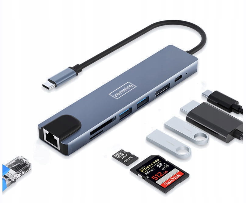ADAPTER HUB 8w1 USB-C DisplayPort 8K 4K 144Hz RJ45 SD Zenwire BYL-2311 - zdjęcie 1