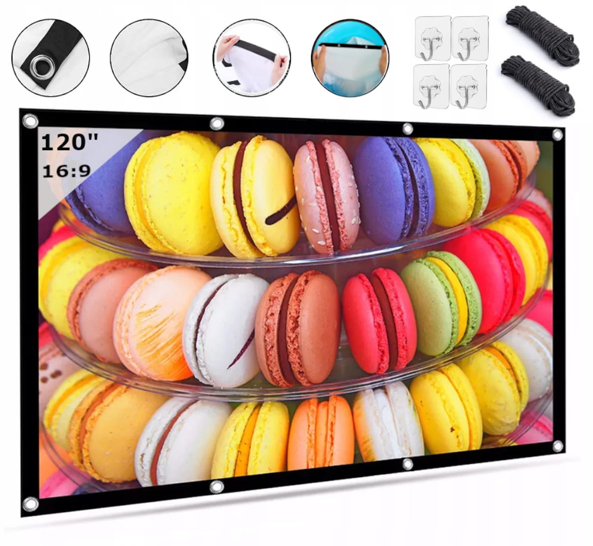 ✅Projekčné plátnomá pružný materiál, ktorý sa dá pokrčiť na jednoduché skladovanie a prenášanie. Po pokrčení sa ľahko roztiahne a pružný materiál sa vráti do pôvodnej podoby na pohodlné používanie.