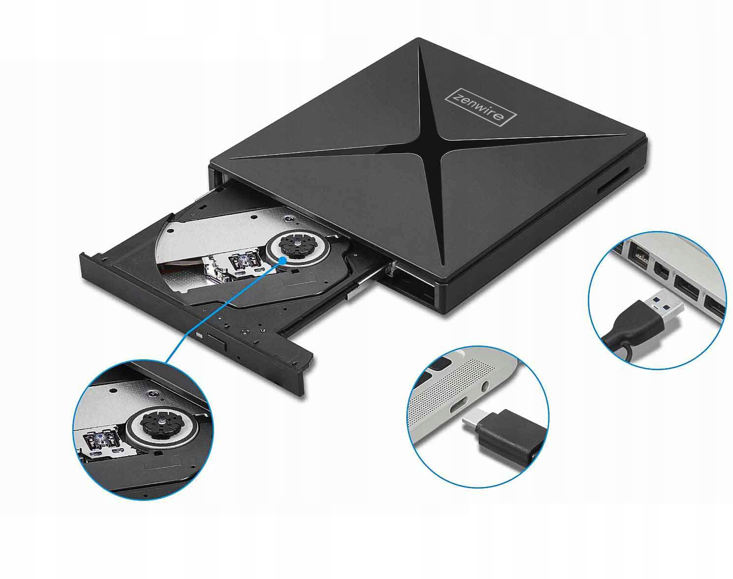 Prenosný externý DVD-CD RW HUB USB-C USB 3.0 Zenwire 4v1 čítačka SD kariet