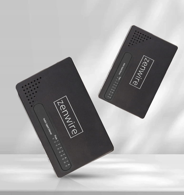 ➡️ Kompaktné rozmery a kompletná súprava - 8-portový prepínač Zenwire s napájacím zdrojom